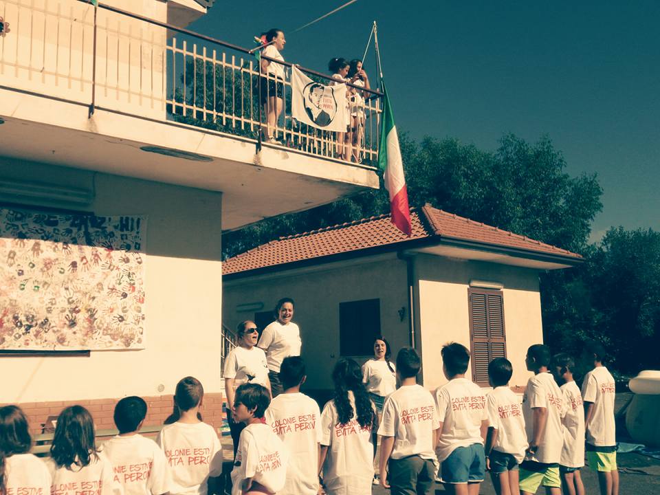 L’“associazione” femminile forzanovista ha dato vita ad una colonia estiva stile colonie estive del ventennio fascista, a cui hanno partecipato 21 fra bambine e bambini, dagli 8 ai 13 anni, trasformati dalle “peroniste” in novelli balilla, con tanto di alzabandiera “militare” al mattino, e ammainabandiera la sera.